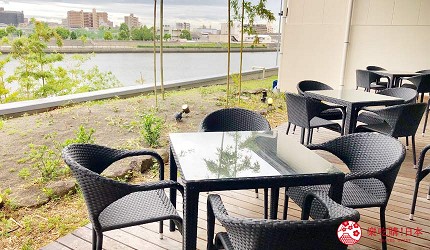可以眺望神崎川的露天座位區(qū)視野相當不錯