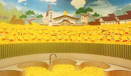 湯樂使用的溫泉是由地底1050公尺處涌出的天然溫泉單純?nèi)?,對于神?jīng)痛、關(guān)節(jié)酸痛都有很好的療效,不用遠走,在大阪市中心就可以平價享用天然溫泉,實在是非常棒的事情!「巖之湯」的溫泉區(qū)中有著各式巖石造景的池子,其中特別的「死海池(浮湯)」,鹽分濃度高,一泡進去就會自動浮起來,非常有趣,可以仰躺著享受漂浮的樂趣!而「檜之湯」溫泉區(qū)則是有著檜木香氣的池子,最讓人驚艷的「小鴨池(あひる橫町お祭り風呂)」,則是池中有著數(shù)百只可愛黃色小鴨陪你一起泡澡!覺得小鴨可愛的話,在湯樂的柜臺也有販賣,可以買回去當紀念品喔!