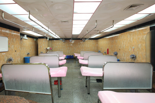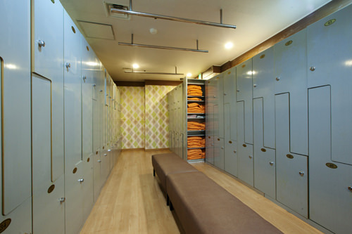 在更衣室里換上特殊的衣服。女性應(yīng)使用提供的清潔劑卸妝。