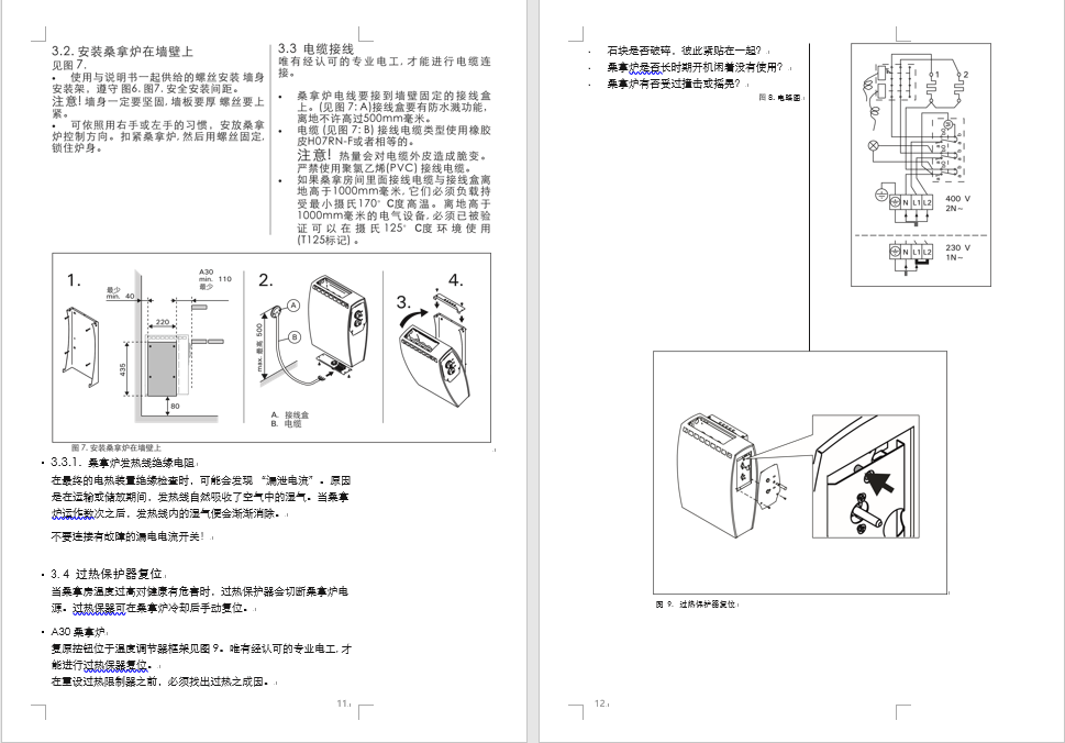 中文 電熱桑拿爐 安裝與使用說明書