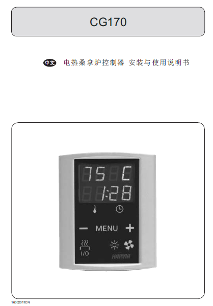 HARVIA 觸摸按鍵式電熱桑拿爐控制器CG170,本產(chǎn)品是特意為控制電熱桑拿爐而設(shè)計,嚴禁使用在其它用途上。注意! 請在使用電熱桑拿爐前小心閱讀說明書。 祝賀您 明智的選擇! 目錄