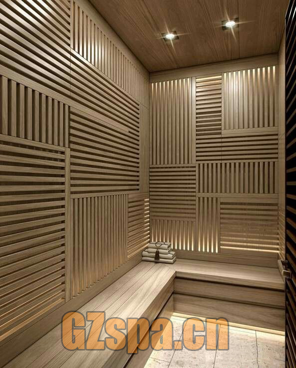 桑拿房墻板用小木條花式拼接做法,擁有一套與眾不同的私人桑拿房