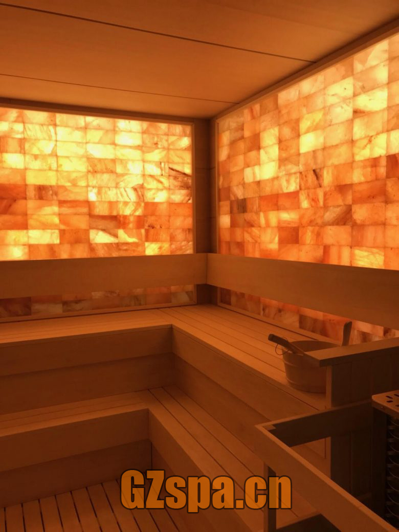 喜馬拉雅鹽石桑拿房,在桑拿房內(nèi)使用鹽石的做法,鹽石的消炎殺菌,透光的裝飾做法,效果非常驚喜。